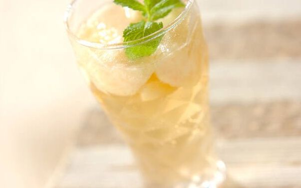 いつものジンジャエールに一工夫。フレッシュな桃をふんだんに投入しましょう。桃は種に沿って切り込みを入れ、左右にやさしくねじるとキレイに分けることができます。リッチ感満載の一杯です。