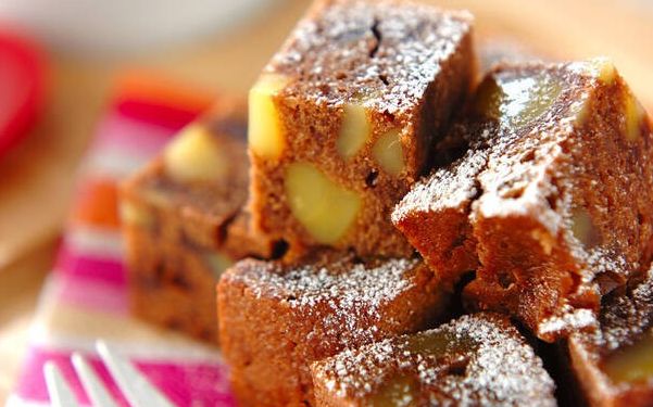 ココアベースのマロンケーキです。サラダ油を使うことでふわふわの生地に仕上がります。栗にからめたラム酒がふんわりと香る上品な味。翌日まで寝かしておくと、しっとり感が増します。