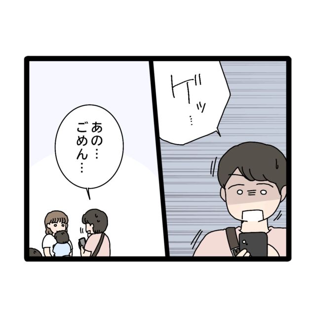 花さんの家は夫のひできさん、4歳ユイちゃん、2歳ヨウくんの4人家族。1年で4回程行く義実家は片道6時間の遠距離。花さんは精神的にも金銭的にもつらいと感じていました。帰省当日。新幹線で花さんとユイちゃんとヨウくんは前の席。ひできさんは後ろの席でおじさんと相席になりました。目的地まで残り半分くらいの時、子ども達の声が少しうるさくなりました。すると後ろから「ちょっと!うるさいんだけど?静かにできないの?」という大きな声がしました。おじさんの大きな声に子ども達は驚き泣き出してしまいました。おじさんに謝罪をし、夫のひできさんの方を見るとイヤホンを外さず、窓の方を見て他人の振りをしていました。大泣きしてしまった子ども達を落ち着かせるため周りの視線を感じながら2人を連れてデッキに移動しました。結局、また子ども達が騒いだり泣いたりするのが怖くて目的地までデッキで過ごすことになりました。新幹線から降りた後、夫のひできに「なんで他人のふりをしたの?」と聞くと「恥ずかしかったから」と冷たい返事がかえってきて花さんはイラッとするのでした。花さんがイライラしている様子を感じ取ったひできさんは子ども達を連れ売店へ花さんから逃げるように去っていきました。