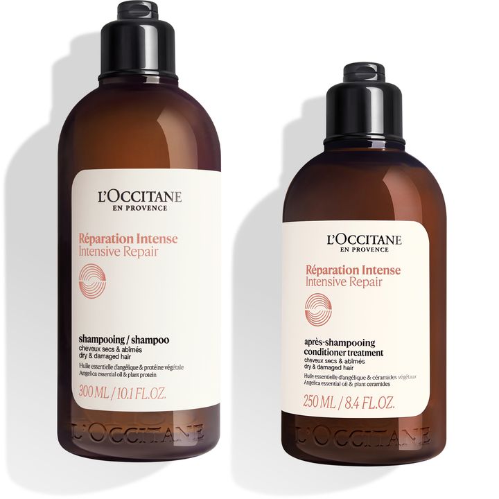 インテンシヴリペア コンディショナートリートメント 250ml ¥3,300、500ml ¥4,950、レフィル 500ml ¥4,400(ともにロクシタンジャポン)