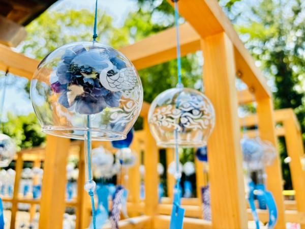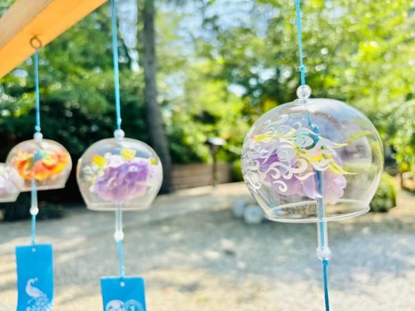 こちらの風鈴回廊を歩いている時に風が吹いたら、とってもラッキーです!たくさんの風鈴が一度に揺れ、音を奏でる瞬間は、まさに圧巻!