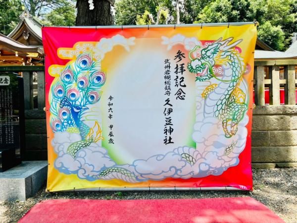 記念撮影スポットが用意されていました!迷わずパシャリ。 クジャクの姿も描かれていて、ここでしか撮れない貴重な写真を残すことができました。お詣りの際はぜひこちらで記念撮影してみてください!