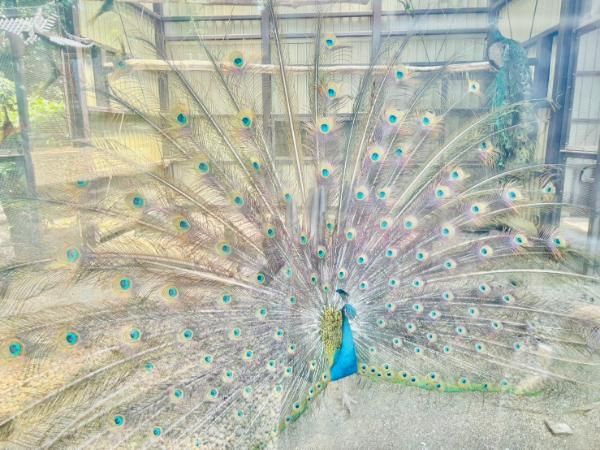 クジャクを下賜された歴史があり、現在もそのクジャクの裔を飼育しているのだそう。そして、繁殖期の春から夏頃にかけては、運が良ければクジャクが羽を広げた姿を見ることもできます。 この日はなかなかその姿を拝めず、諦めて背を向けて歩き出したものの、やっぱり羽を広げた姿を見たい!と思い、振り返ってみると…