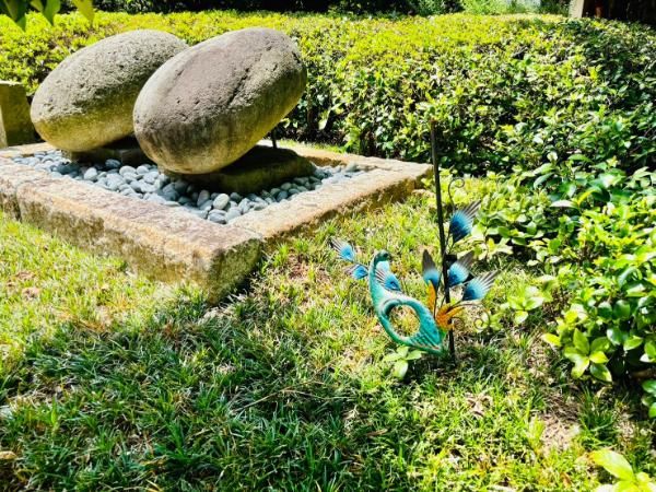 風鈴を近くでよく見てみると、羽を広げたクジャクの姿を見つけることができます。 またさらに奥へと歩みを進めて行くと…