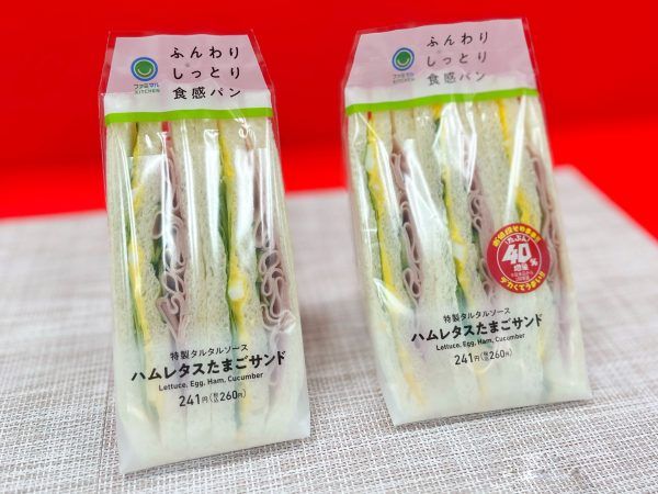 サンドイッチの増量は、見た目にも増えたのが分かりやすくて魅力的。「ハムレタスたまごサンド」は、お値段そのままで1つ増量!玉ねぎやピクルスを使用したタルタルソースがアクセントになっています(260円)。