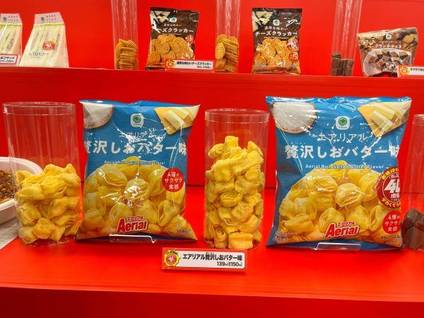 サクサク食べられる「エアリアル贅沢しおバター味」は、増量しても、気づいたら全部食べちゃうおいしさ(150円)。4層形状のコーンスナックは、軽くて、バターのコクと塩味がベストマッチです。21万食限定。