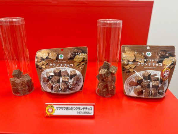 もう一つ、「ザクザクきわだつクランチチョコ」は26万食限定。堅焼きビスケットや粉砕ビスケット、ワッフルコーンなど3種類の素材を組み合わせてザクザク食感を作り出しているクランチチョコレートは、その食感がおいしさの秘密!