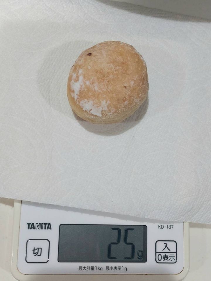 中を見てみるとペ-ストが少ないかなと思いましたが、ドーナッツ自体にも粉砂糖がまぶしてあり甘いのでちょうどよかったです。