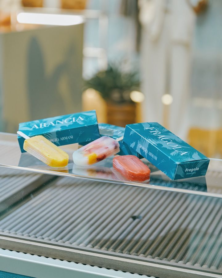 来場ゲストには先着順にてアイスキャンディをプレゼント(※なくなり次第終了)。ジョルジオ アルマーニならではの夏の世界観に浸れるポップアップを訪れてみて!