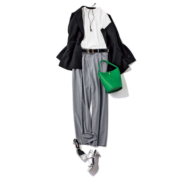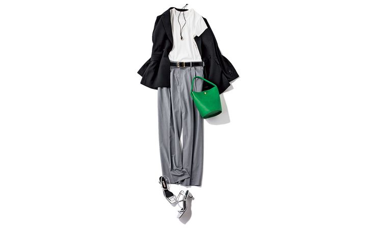 モードにも振れる、ゆとりのあるシルエット。背中に深く入ったスリットで体温がこもりにくい。ジャケット¥35,200(ルーニィ)
