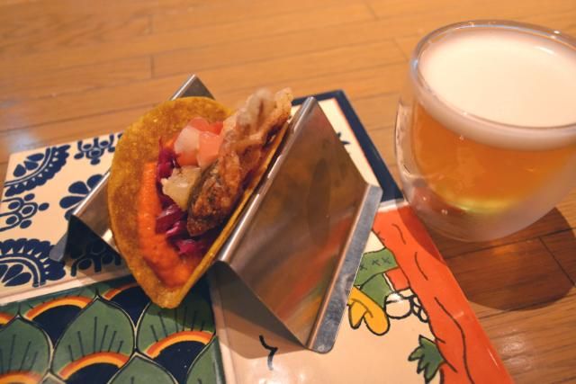 フリービールは、沖縄でおなじみのオリオンビールの生ビールが可愛らしいグラスで運ばれてくる。一口飲むと、冷たさが体にしみる。なかには「1時間で7~8杯飲まれる方もいる」そうだ。有料のタコスもほおばればもう絶品! 沖縄の暑さも吹き飛ぶようなうれしいおもてなしだった。