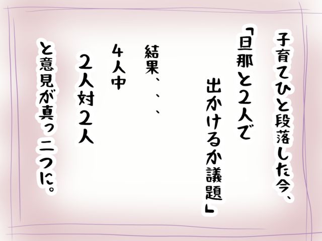夫と2人きりの旅行。楽しい派とムリ派で意見が真っ二つ。子育てがひと段落した母たちの会話[2]|てる子の育児日記