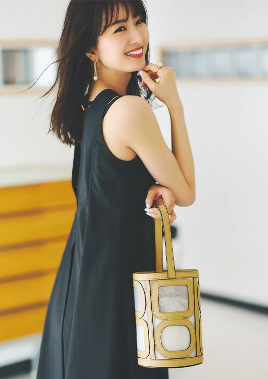 バッグ¥33,000/オルセット(オルサ) ワンピース¥15,400/MERCURYDUO(MERCURYDUO ルミネエスト新宿店) ピアス¥1,980/アネモネ(サンポークリエイト) リング¥30,800/プラウ