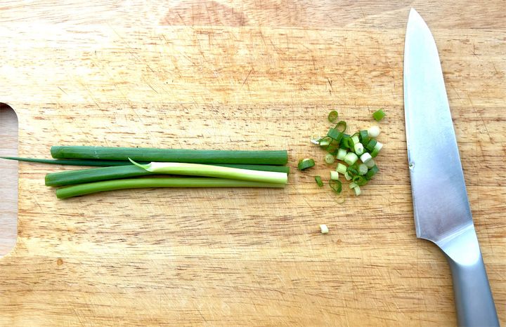 1. 薬味となる青ねぎを刻みます。
