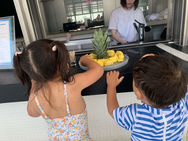 4歳長女も2歳長男もパイナップルが大好きなので爆食いしていました!笑