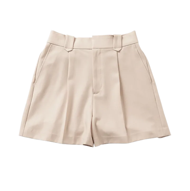 オトナに見せたい女子のミニ丈ボトムはミニスカではなくショーパンで清楚に。美脚見えを狙える台形シルエット。