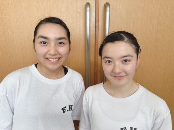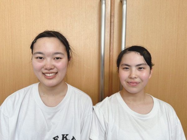 絶対的エースであり部長の松田 芽奈(まつだ めいな)さん(右) チームのムードメーカーで副部長の梶原 祥(かじわら しょう)さん(左)