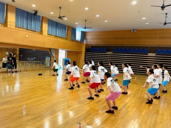 練習の始まりのウォーミングアップは笑顔でジャンプをして体を温めることから始まります。「表情」は大会審査の中にも入る為、普段の挨拶や練習から笑顔を忘れません。ダンスのテーマによって可愛らしさを表現することもありますが、今回は「戦い」がテーマなのでカッコよさが全面にでていました!