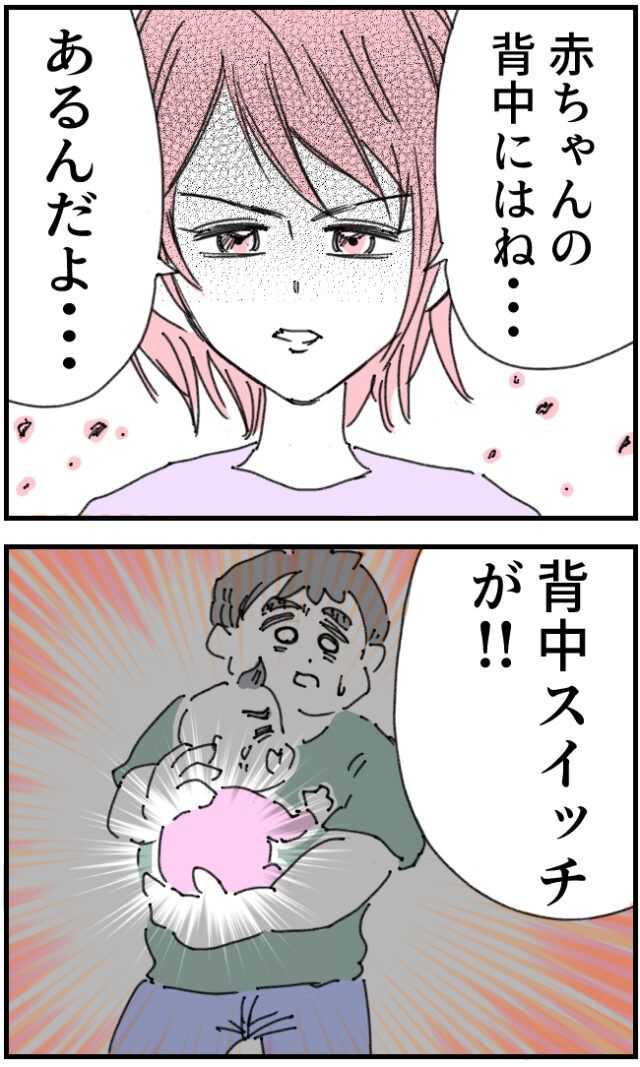 すると「赤ちゃんの背中にはね・・あるんだよ・・背中スイッチが!!」とても静かにかおりさんはそう言いました。