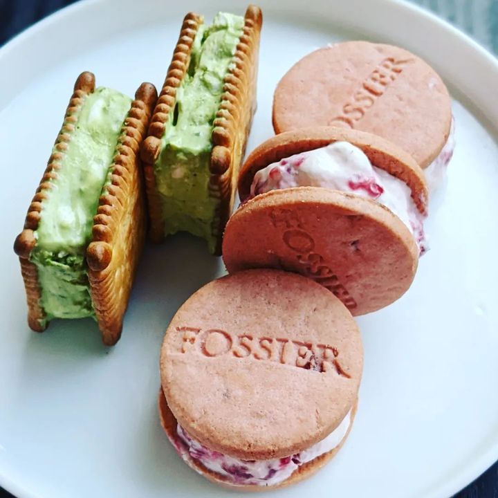 抹茶とフランボワーズ、まるでお店のようなビスケットサンドも、おうちで手作りしたフローズンヨーグルトのアレンジレシピ。
