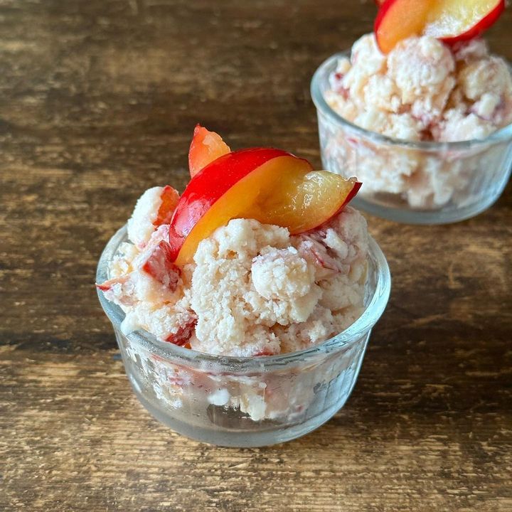 旬を迎えたプラムを使って、フローズンヨーグルトに。
