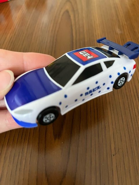 カルピスデザインになったスポーツカーは、付属のキーを本体の穴に差し込んだまま