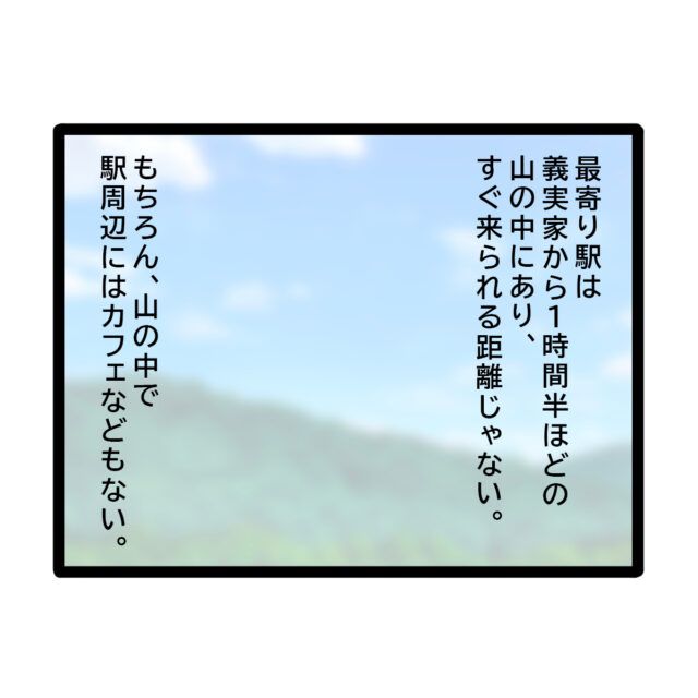 最寄り駅は義実家から1時間半ほどの山の中にあり、すぐ来られる距離じゃない。