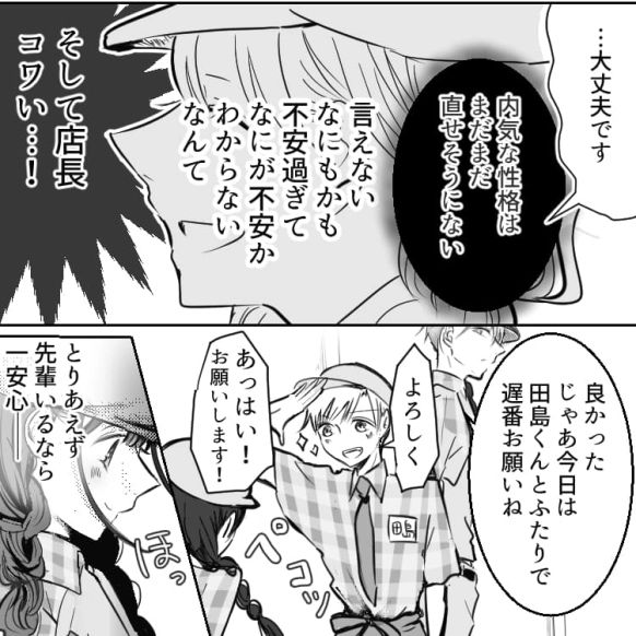 主人公は人見知りを直すために、ファストフード店でアルバイトを始めました。