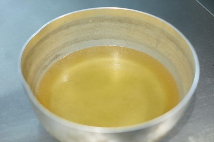 キッチンぺーパーを濡らしてから漉し器に敷き、ブイヨンを漉して完成。冷蔵で4日、冷凍で1ヶ月ほど保存可能。