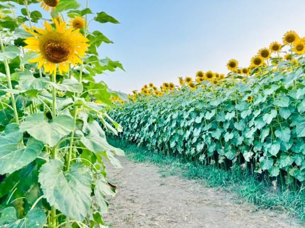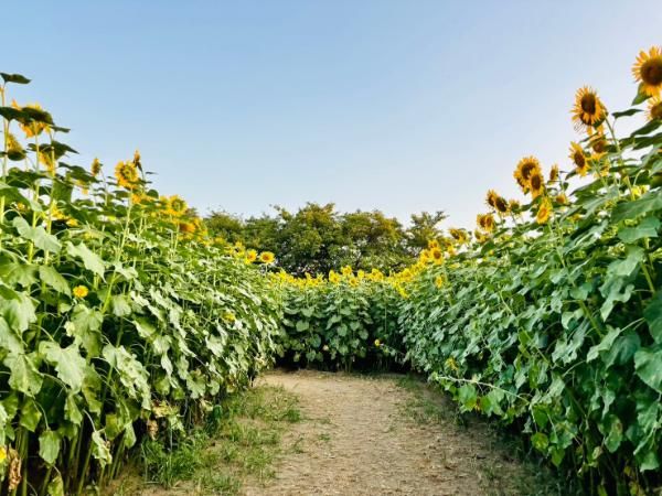 比較対象がないので伝わりきらないかもしれないのですが、こちらのひまわりたちは、かなり背が高いのです!視界がすべてひまわりで覆われて周囲の景色が見えないので、ひまわりたちが作り出す迷路に大人もワクワク♪