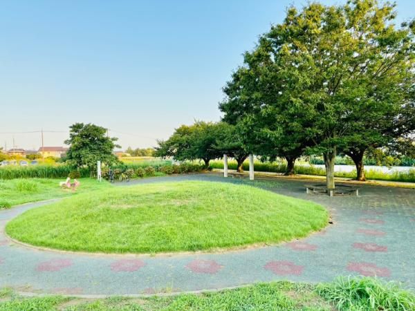 公園の中には、このように小高い丘があるので、少し高い位置からの撮影もできます。 (ちなみに…我が子は、圧巻のひまわりよりも、写真奥に写っているスプリング遊具に夢中でした笑)