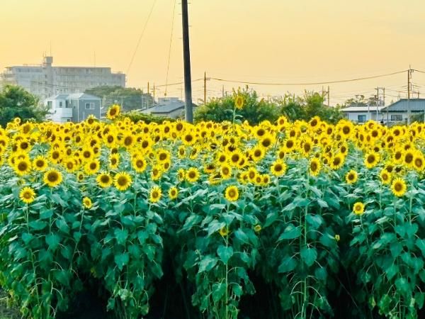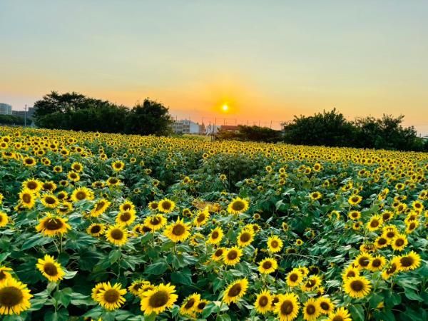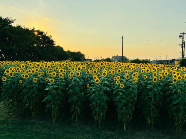 沈みゆく夕陽を見ていると、なんとなく物悲しい雰囲気になりがちですが、そんなちょっとだけセンチメンタルな気持ちも、圧巻のひまわりが一瞬で払拭してくれました!