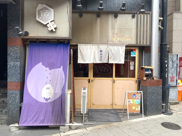 西武新宿駅南口から徒歩1分、歌舞伎町などの歓楽街近くにあるのがかき氷専門店「氷おばけ」です。営業中は、店名とオリジナルキャラクター「氷おばけちゃん」が描かれたのれんが入り口に出ているので目印にしてみて。