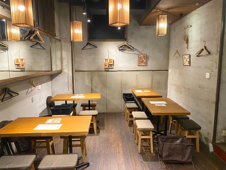 「氷おばけ」は、居酒屋を間借りしてオープンしたかき氷専門店。店内は地下、地上、2階の3フロアになっていて、座席がテーブルとカウンターで全38席。間借りのため営業時間が時期によって異なりますが、夏季は11〜21時の朝から晩まで営業しているので仕事帰りにふらっと寄れるのでうれしい!
