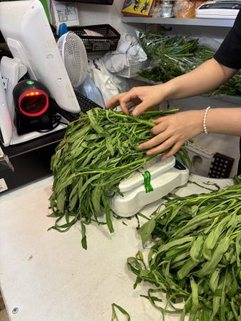 この日は空心菜が入荷され、ちょうど袋詰めの作業をされていました。空心菜は日本で買うとお高めなので助かります。