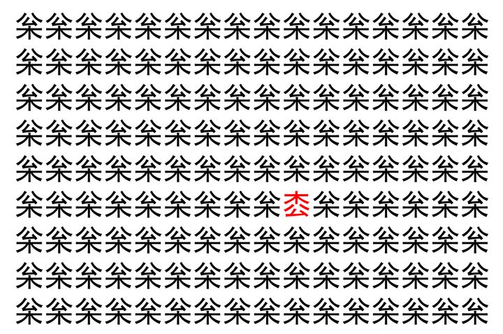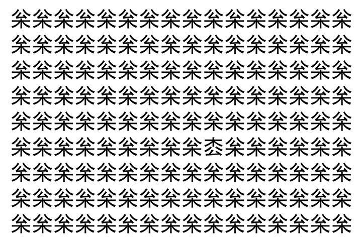 画像の中には、「枀」という漢字が縦に9行、横に16個並んでいます。 全部で144個となりますが・・・、そのうち1つは「異なる漢字」となってますよ!!
