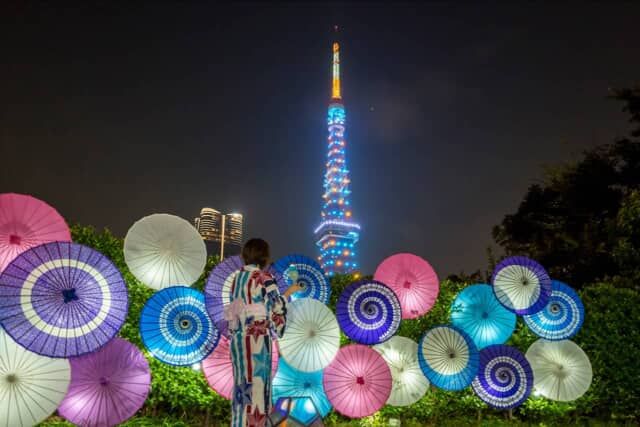 東京タワーの真っ赤に映えるライトアップも素敵ですが、この日はちょうど関東地方に梅雨明け宣言が出されたため、梅雨明けのスペシャルライティングに遭遇。そんな特別な日に出会えればいい想い出になるはずです。