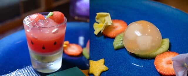 ▲「スイカのパンナコッタゼリー」と「フルーツ水まんじゅう」