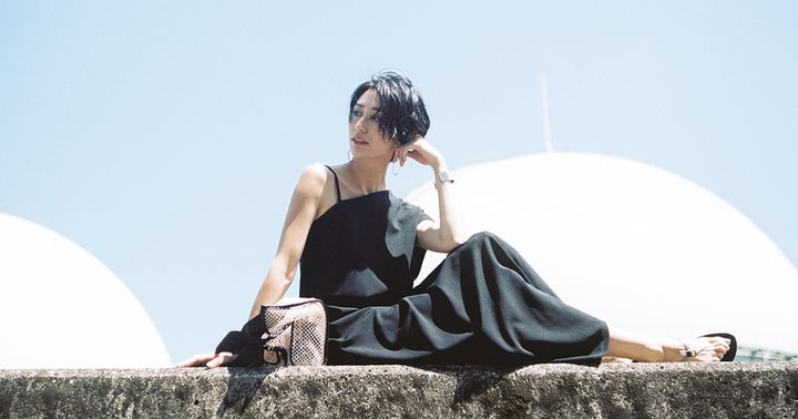 ワンピース¥25,300(ミースロエ/ミースロエ ルミネ新宿1店)ピアス¥37,400(ブランイリス/ブランイリス トーキョー)バングル¥104,500(ガルニ/ガルニトウキョウ)バッグ¥7,150(スピード/ゴールドウイン カスタマーサービスセンター)サンダル¥22,000(シーセイ/アイネックス)