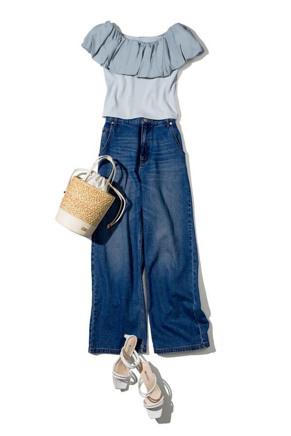海で着たい【デニムパンツ】は旬な甘トップスと合わせて今年らしいフェミカジュに♪