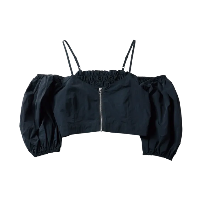 黒ナイロンフロントジップオフショルトップス 4,950円/VANNIE U(アンティローザ)