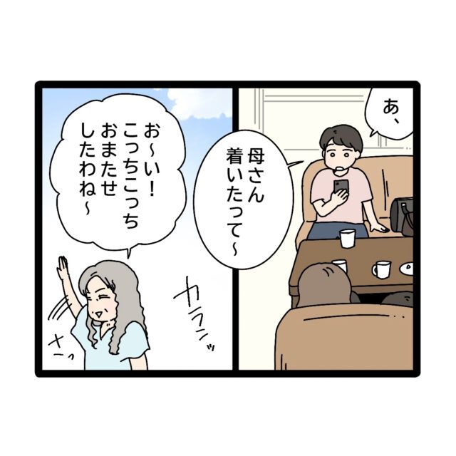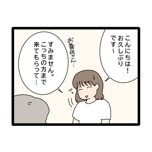 「こんにちは!お久しぶりです。すみません、こっちの方まで来てもらって」と、花さんはすぐに義母に挨拶しました。