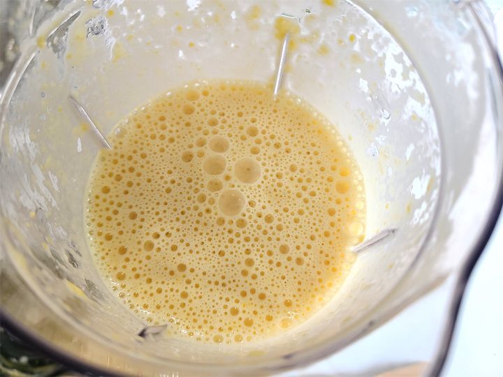 3. 12のとうもろこし、卵、牛乳を加えて混ぜたあと、ミキサーにかけます。
