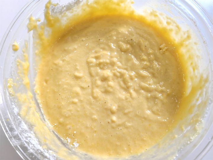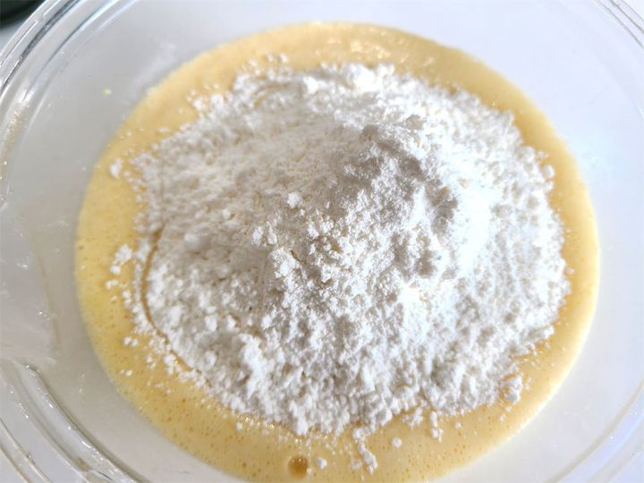 4. ホットケーキミックスを加え、さらによく混ぜます。