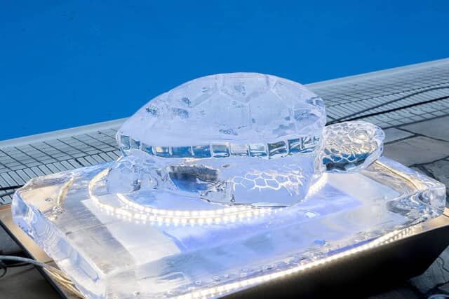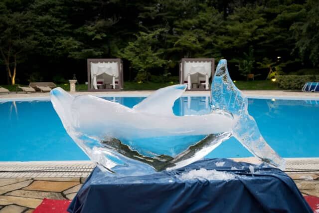 プールの中で氷の彫刻に触ったり、一緒に泳いだりして遊べる夏にピッタリのイベントです。