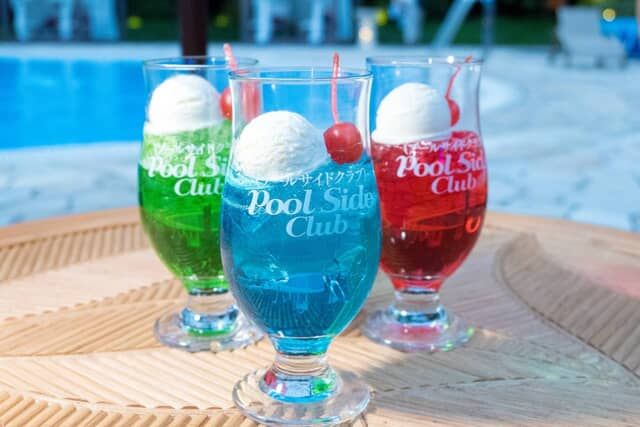 ▲プールサイドのカフェで提供しているレトロでカラフルな「クリームソーダ」