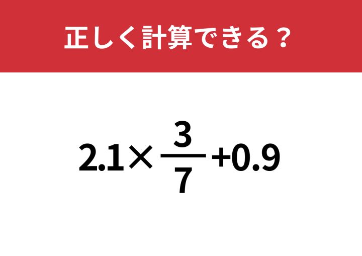 複雑な計算だけど、あなたなら正解できるはず!「2.1×3/7+0.9」正しく計算できる?