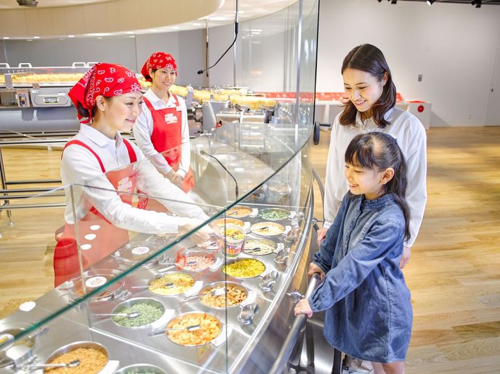世界でひとつだけのオリジナルカップヌードルを作ることができるアトラクション。自分でデザインしたカップに、好みのスープ、トッピングを選べます。