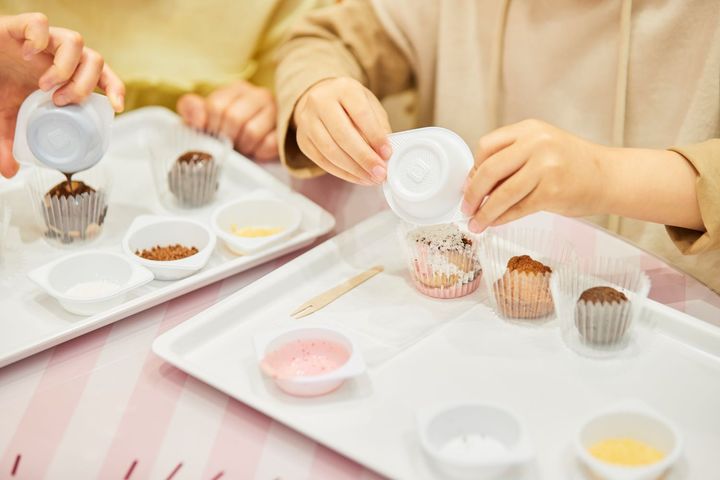 ドーナツボールトッピング体験では、3種類のドーナツと数種類のチョコレートから1つ選んで自分だけのオリジナルドーナツを作ることができます。