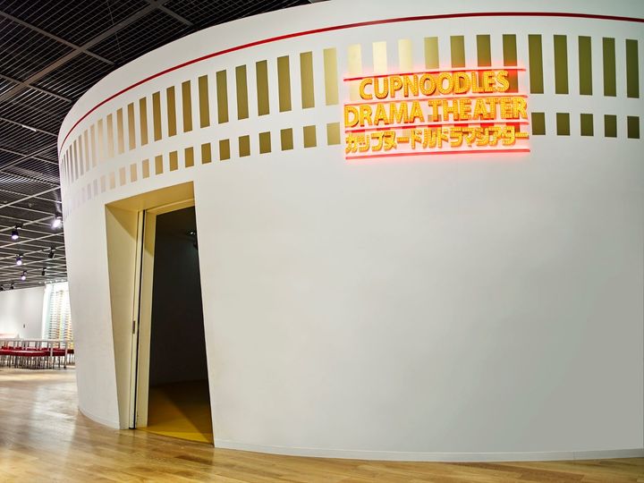 カップヌードル型の体感シアター。カップヌードルの秘密をアニメーションやCGを使った迫力ある大型映像でわかりやすく紹介。